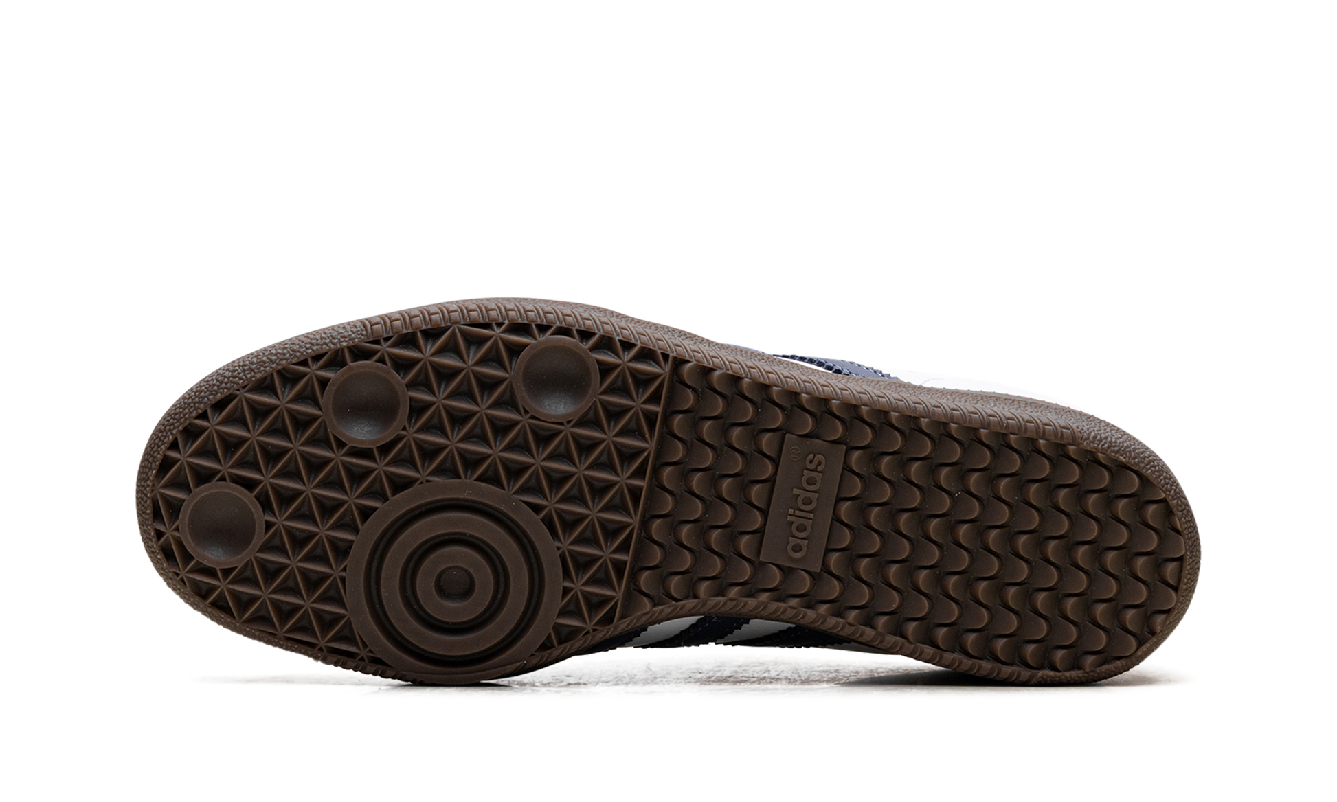 The adidas Samba OG WMNS "White Preloved Ink" is the women's iteration of the iconic. low-top trainer. It maintains the classic Samba elements. including the signature T-toe design. a white leather upper. and the distinct gum rubber sole. The colorway is accented by "Preloved Ink" (a dark color. likely blue or black) on the iconic three-stripes and heel tab.