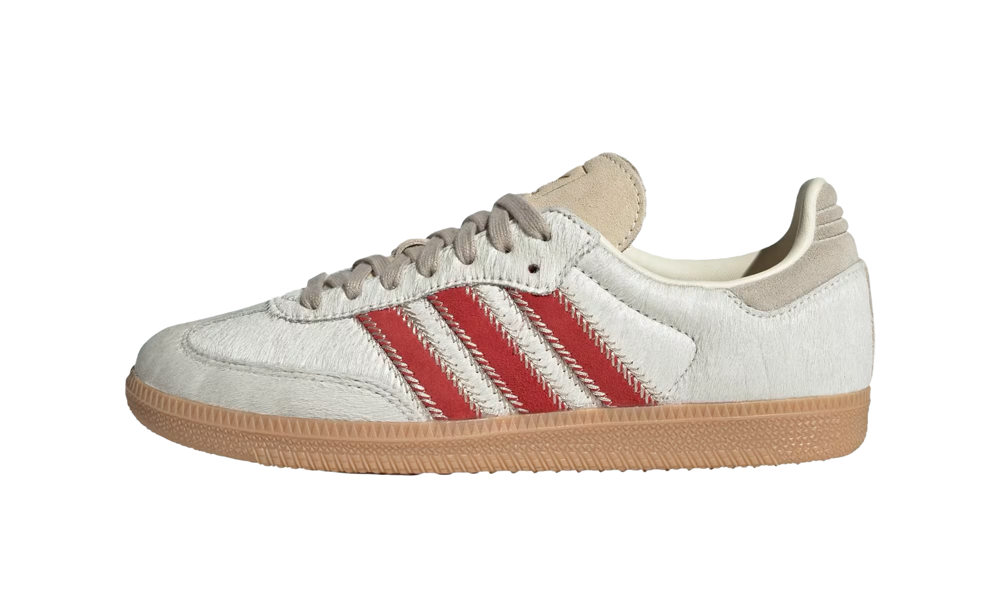 Elevate your style with the stunning ADIDAS Samba OG WMNS "Wonder Beige Cream White." known as the "Wonder Beige Cream White." This women's exclusive features the beloved low-profile Samba silhouette in a chic. neutral colorway. The premium leather and suede upper blend sophisticated beige and cream white tones. ensuring versatility for any outfit. Finished with the signature gum rubber outsole for classic appeal and traction. this Samba iteration is the perfect blend of heritage design and modern. effortless elegance.