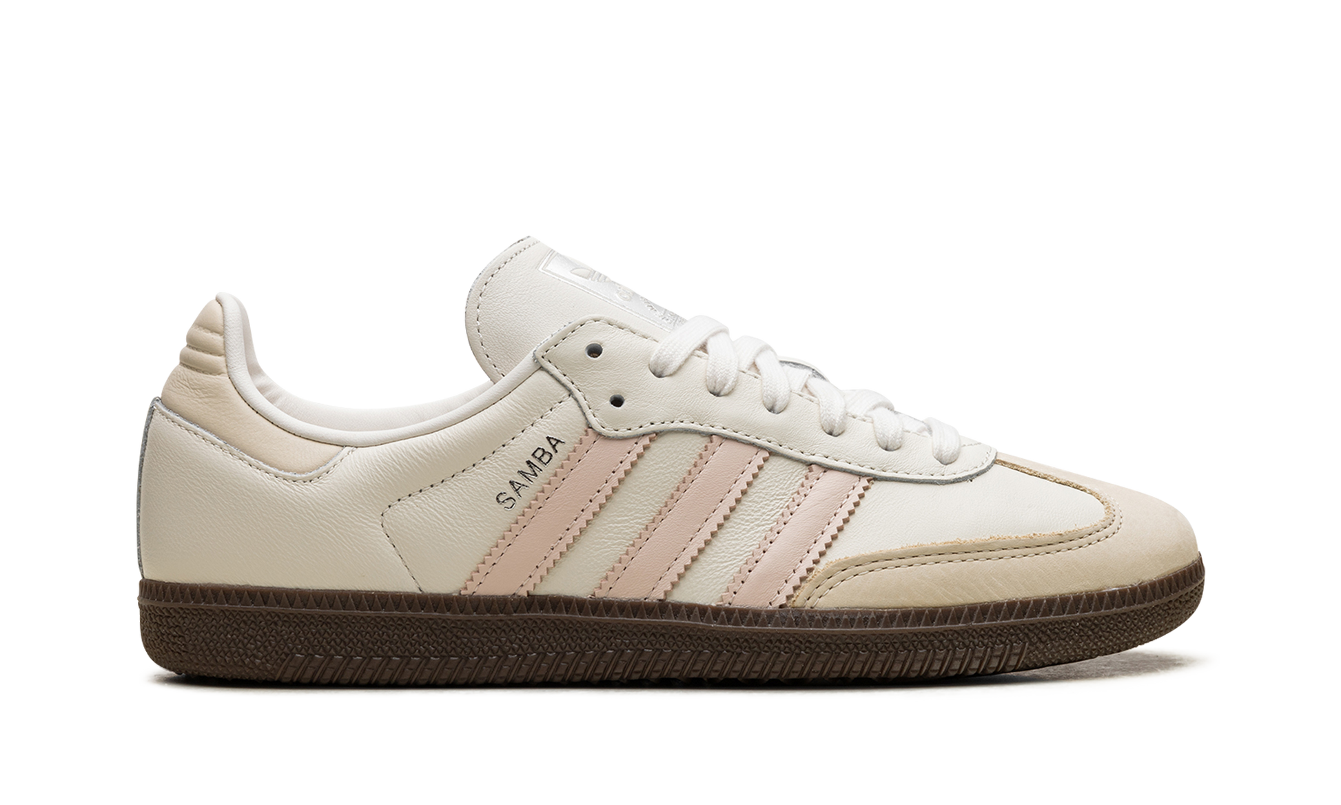 The Women's adidas Samba OG “Wonder Quartzâ€?is a women's-exclusive colorway of the popular shoe with light pink details. The adidas Samba is one of the most coveted sneakers on the planet. as it is beloved for its comfort and timeless design. On the “Wonder Quartz.â€?the upper has an off-white leather construction with a beige leather overlay on the toe. Pastel pink leather Three Stripes branding appears on the sides. while a “Sambaâ€?logo can be seen on the lateral side of the mid-panel. A dark gum rubber sole completes the look.