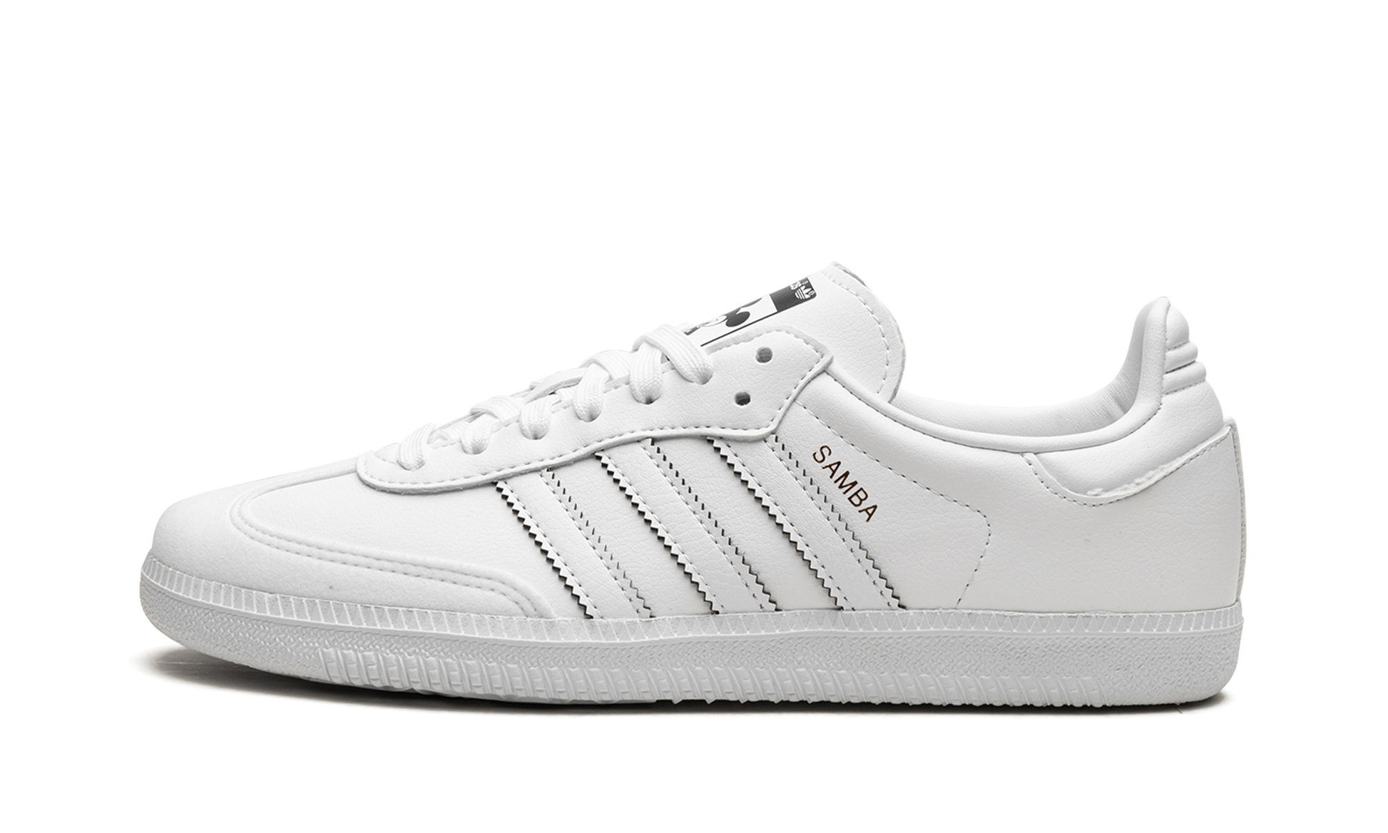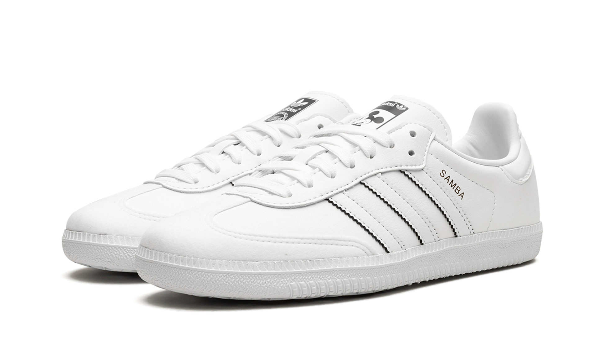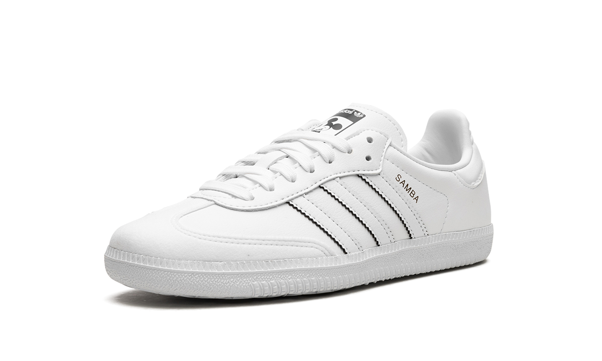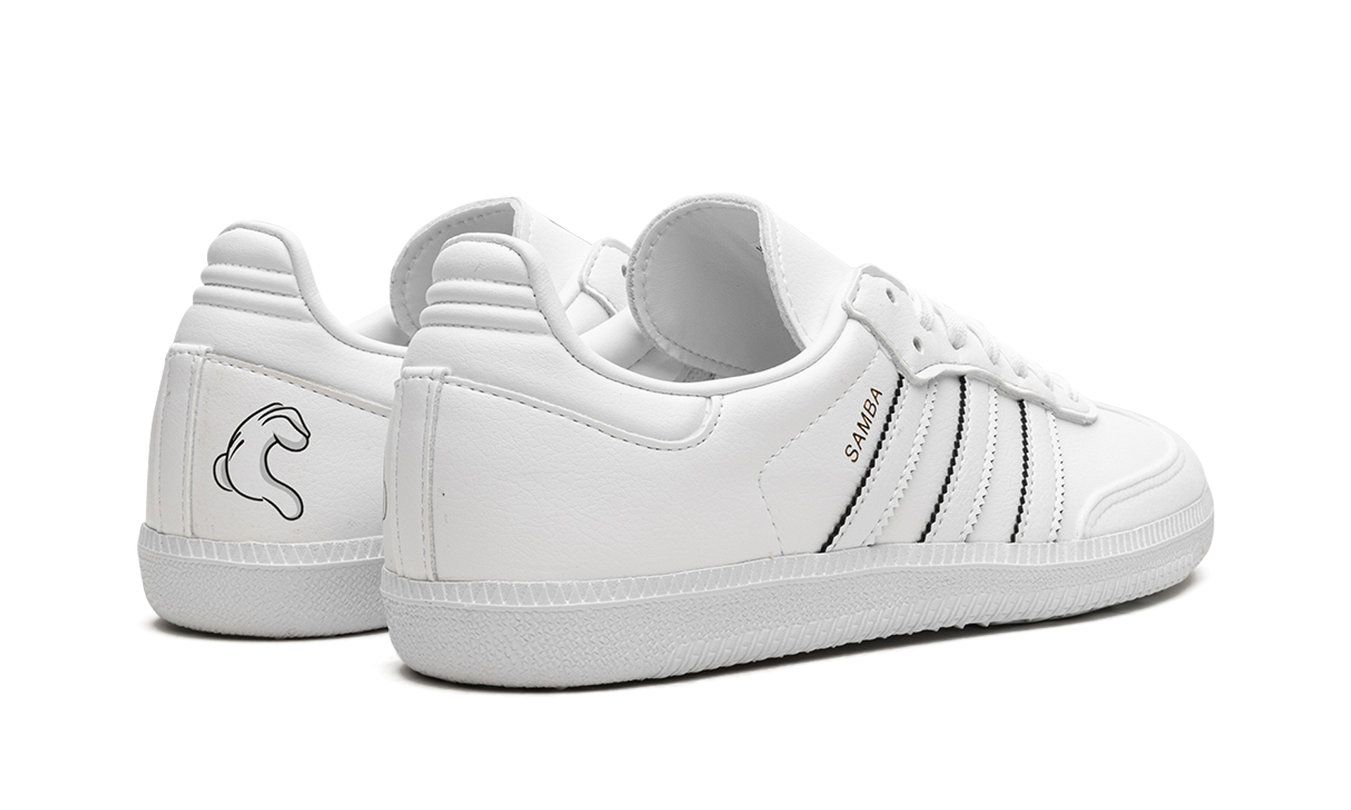 The adidas Samba Vegan "Mickey Mouse" is a creative colorway of the popular lifestyle shoe that is inspired by the iconic Disney character. The Samba Vegan “Micky Mouseâ€?is one of several colorways from adidas's collection of shoes that celebrates Disney's 100th anniversary in 2023. The “Mickey Mouseâ€?tribute edition of the Samba features a white vegan leather design with “Sambaâ€?branding next to the classic Three Stripes detailing on the sides. Mickey's gloved hand forms a heart shape motif on the medial side of the shoe. Additional Mickey-inspired details can be found on the tongue. Release date: April 27. 2023