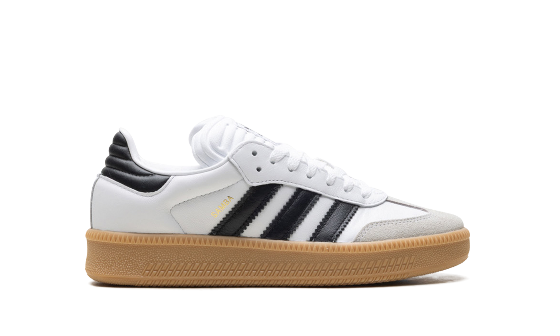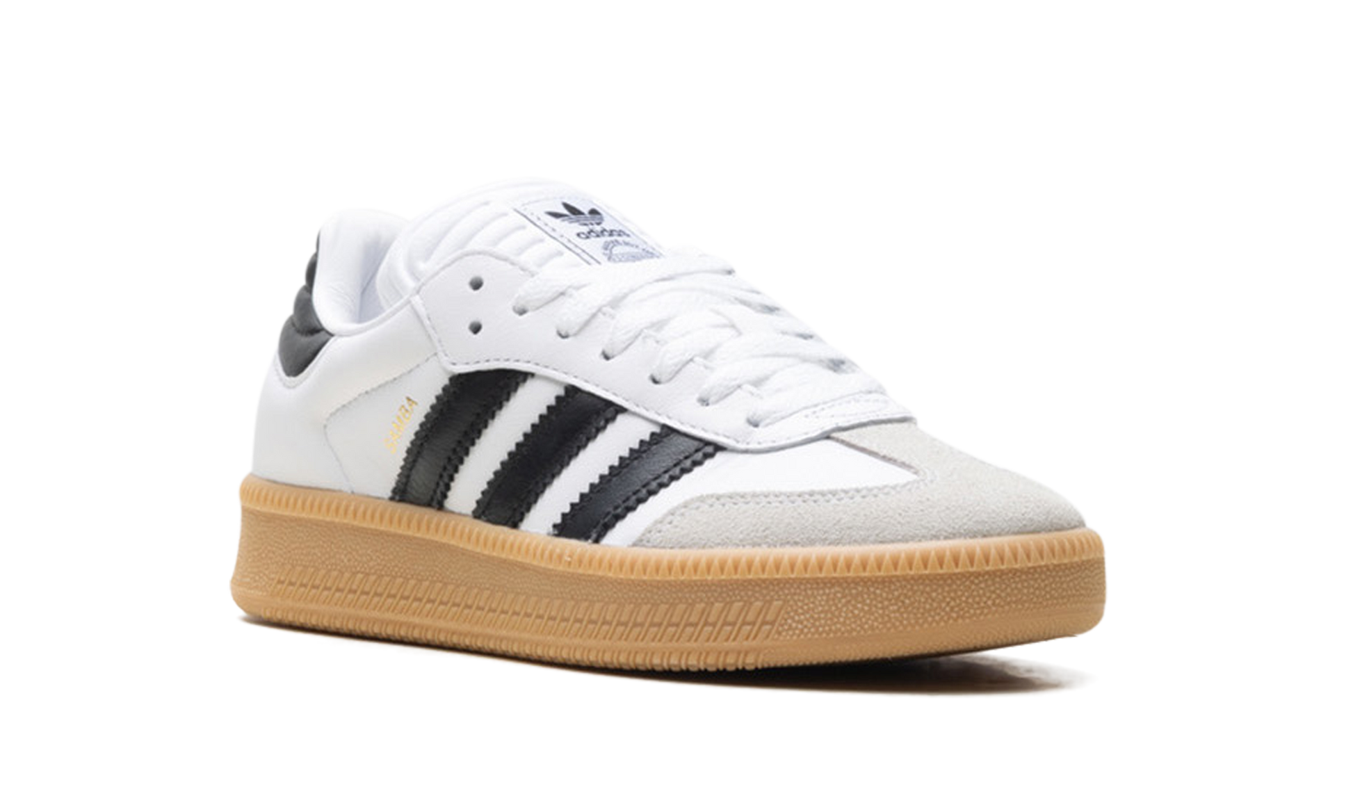 Step into a classic with a modern twist in the Samba XLG GS 'White Black Gum'. a shoe that takes the iconic football silhouette and elevates it. This grade-school model. a.k.a. the "Samba XLG". features a clean White leather upper contrasted by Black serrated Three-Stripes and a signature suede toe cap. The oversized. thicker midsole provides a stylish. exaggerated look and extra cushioning. all finished with a classic Gum rubber outsole. Perfect for daily wear and making a bold street-style statement.
