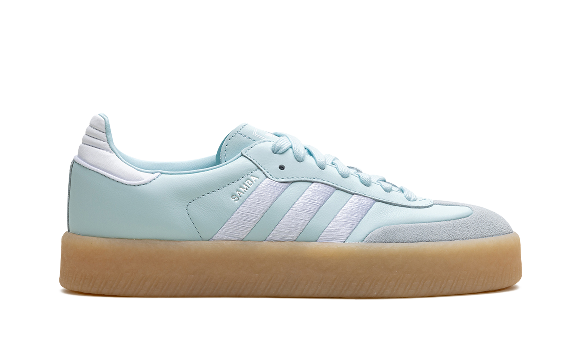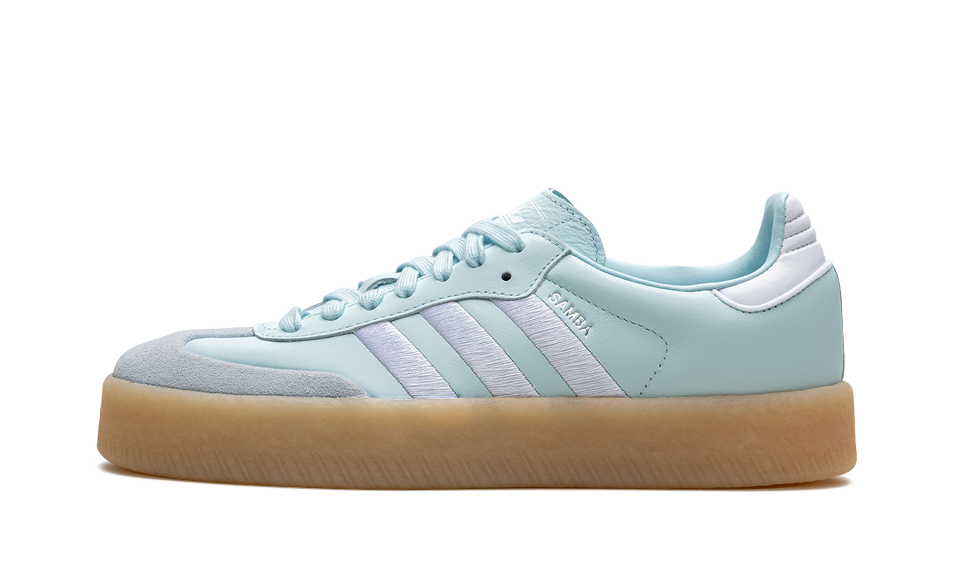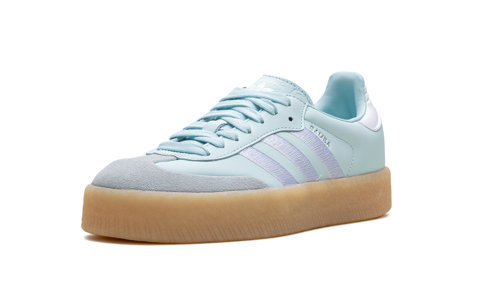 The Women's adidas Sambae “Almost Blue/Silver Metallicâ€?is a women's-exclusive colorway of the version of the retro shoe with a platform sole. Based on the adidas Samba OG. the adidas Sambae features contemporary details such as a thick rubber midsole that gives the shoe a platform-style appearance. On this colorway. the upper has an Almost Blue leather construction with oversized white embroidered Three Stripes on the sides. A white leather panel appears on the heel. while classic adidas branding can be found on the tongue. The platform sole in gum rubber completes the look.