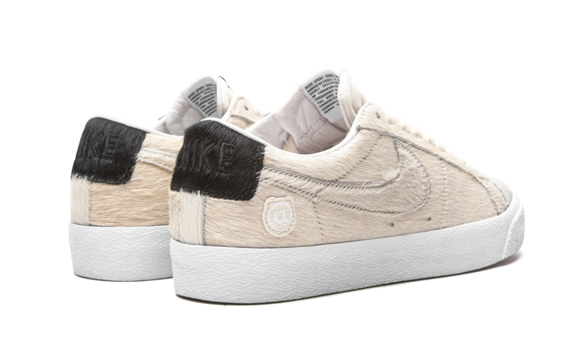 The Medicom Toy x Nike SB Blazer Low “Bearbrickâ€?is a limited edition collaboration between the Japan based toy manufacturer and Nike on the low-top skate shoe. Released by Nike in December 2020. the “Bearbrickâ€?SB Blazer Low celebrates the popular collectable figurine of the same nickname. Design details include a Light Cream faux pony hair upper with tonal Swoosh branding on the mid-panel. The hairy material can also be found on the tongue. eyelets. and toe. A black faux pony hair fabric is stitched onto the heel. Medicom's "Be@rbrick" logo is embroidered on the heel and stitched onto the white nylon tongue tag to complete the look. Release date: December 26. 2020.