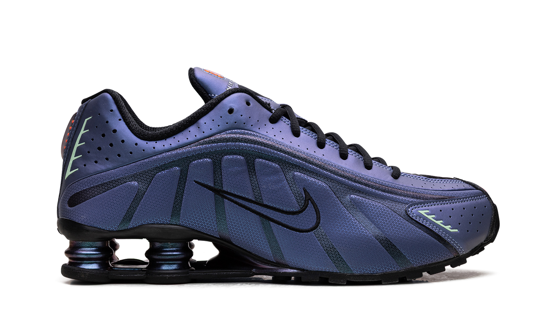 The Nike Shox R4 is a bold icon of early 2000s performance design. famous for its visible. mechanical cushioning. This "Iridescent" edition elevates the futuristic look with a high-shine. color-shifting finish that makes an unapologetic statement in any setting.