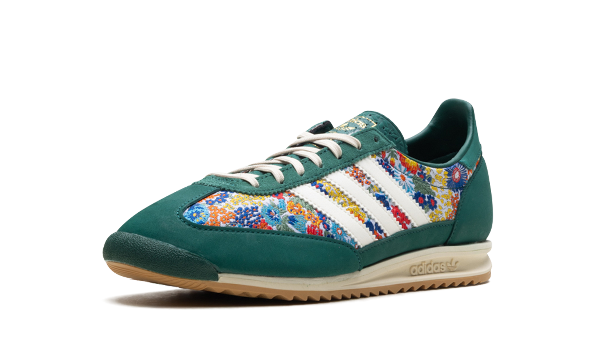 Own a piece of history with the Adidas SL 72 OG Wmns Liberty London "Collegiate Green." This collaboration revitalizes the vintage runner with a premium Collegiate Green mesh upper complemented by luxurious suede overlays. The design is elevated by a vibrant. floral print—a signature Liberty London touch—on the liner and three-stripes branding. Finished with a classic rubber outsole. this stylish women's exclusive perfectly blends archival running aesthetics with high-fashion flair for your everyday rotation.
