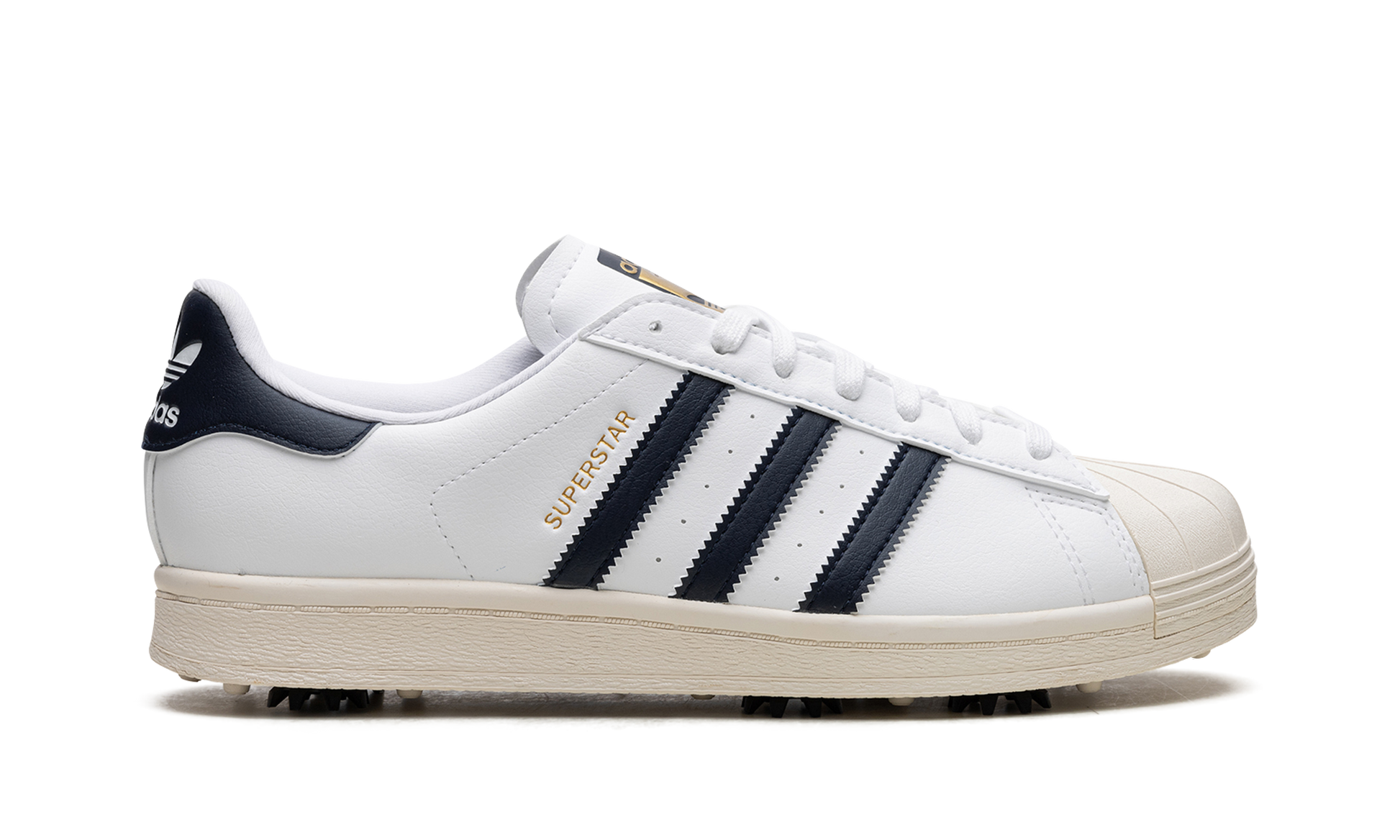 The Superstar GOLF 'White / Navy' shoe blends classic Adidas Superstar style with golf-specific features. offering a stylish and functional option for the course.