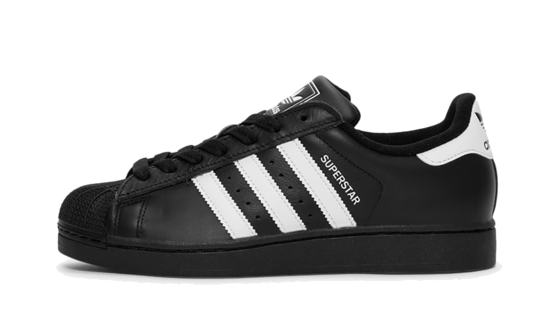 The Superstar II WMNS 'Black White' shoe features a classic two-tone design. offering a versatile and timeless addition to any sneaker collection.