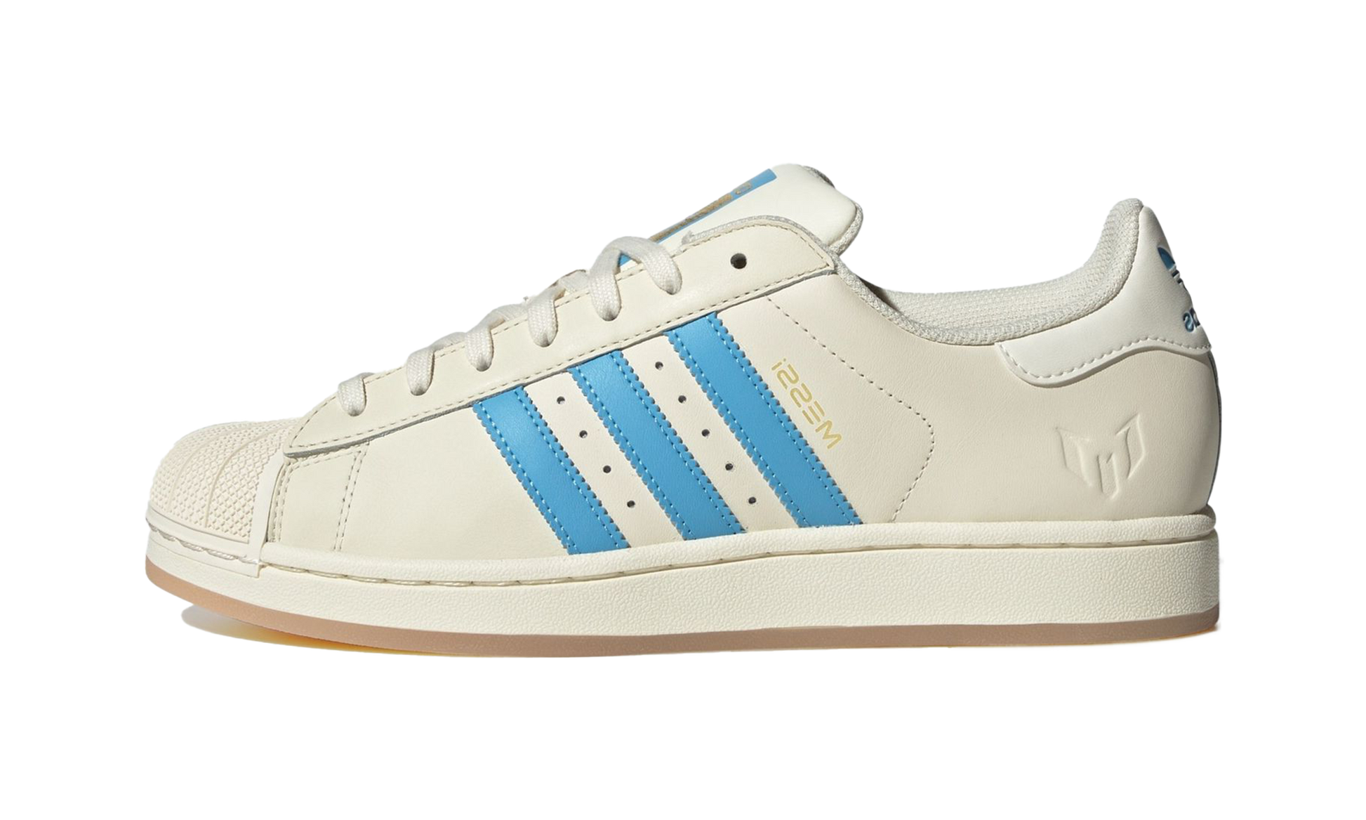 The Superstar 'Lionel Messi - Argentina' shoe celebrates the iconic footballer's connection to Argentina. blending classic Superstar style with unique design elements inspired by the national team.