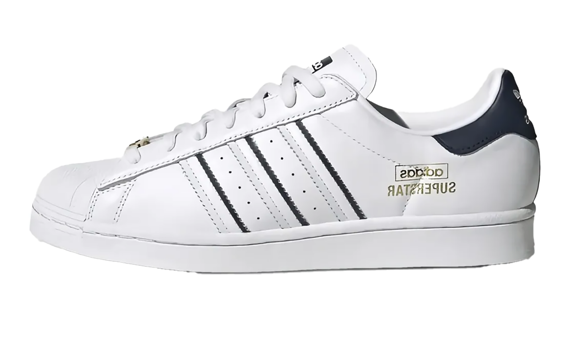 The Superstar WMNS 'White' shoe features a classic design in a clean white colorway. making it a versatile and timeless addition to any sneaker collection.