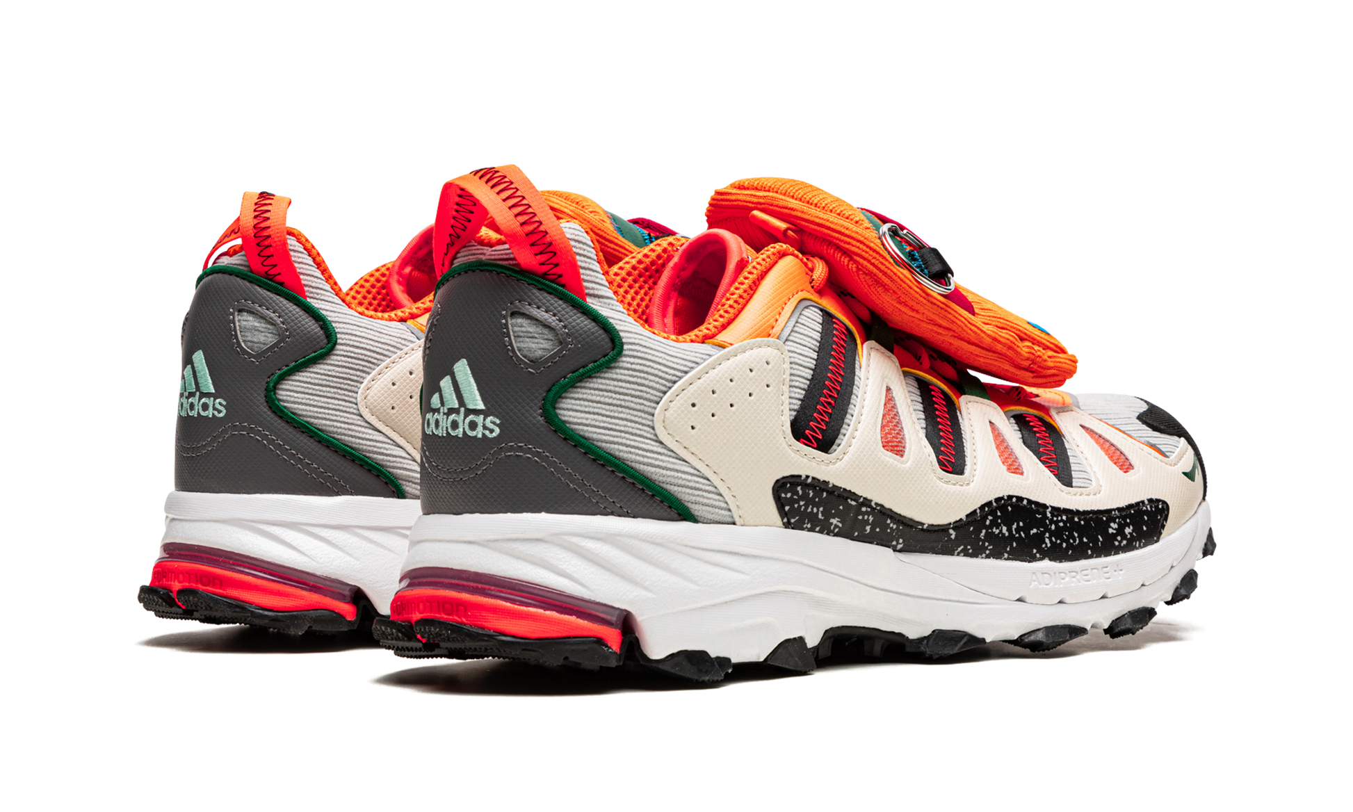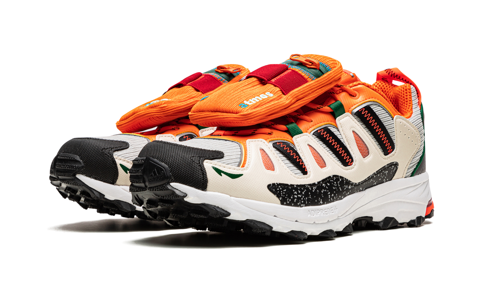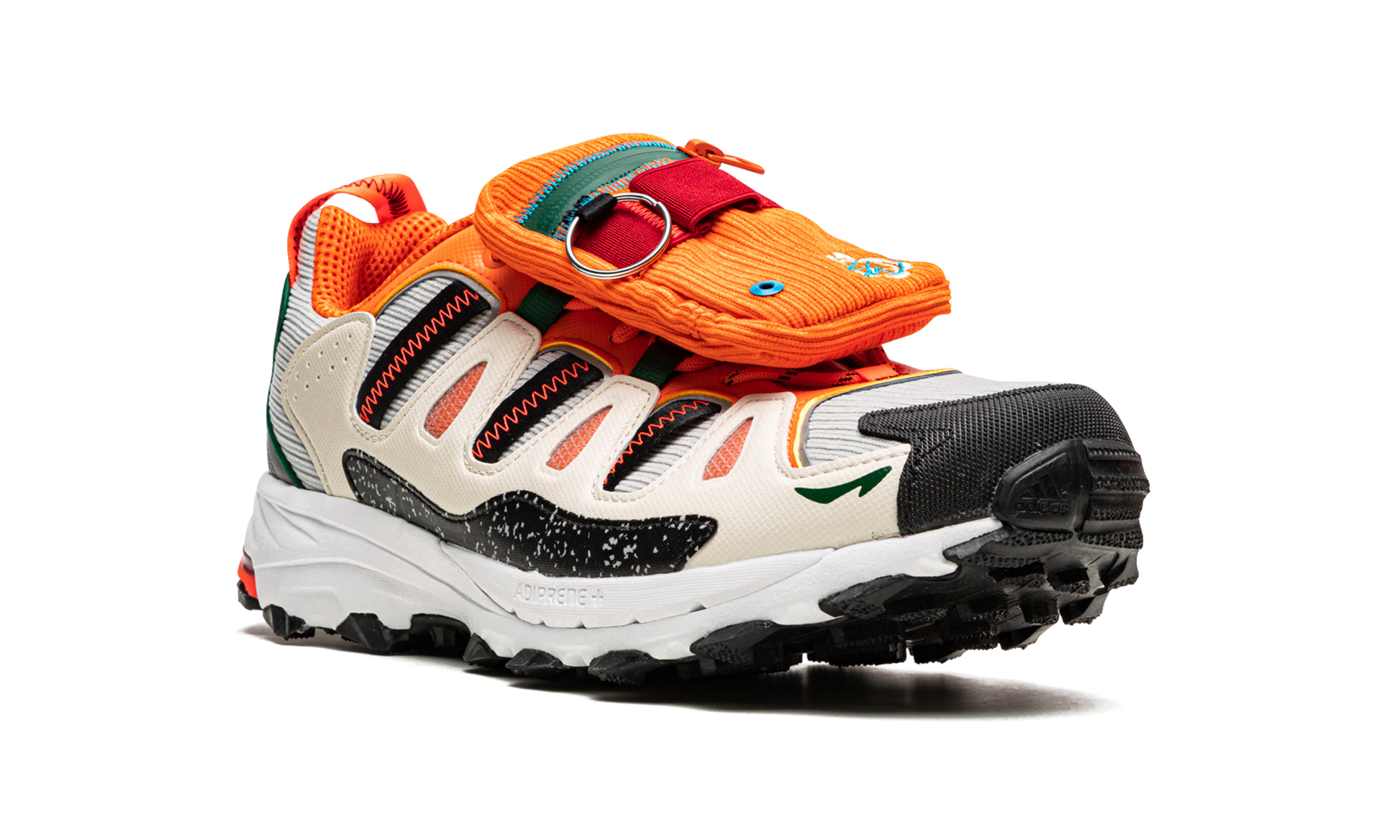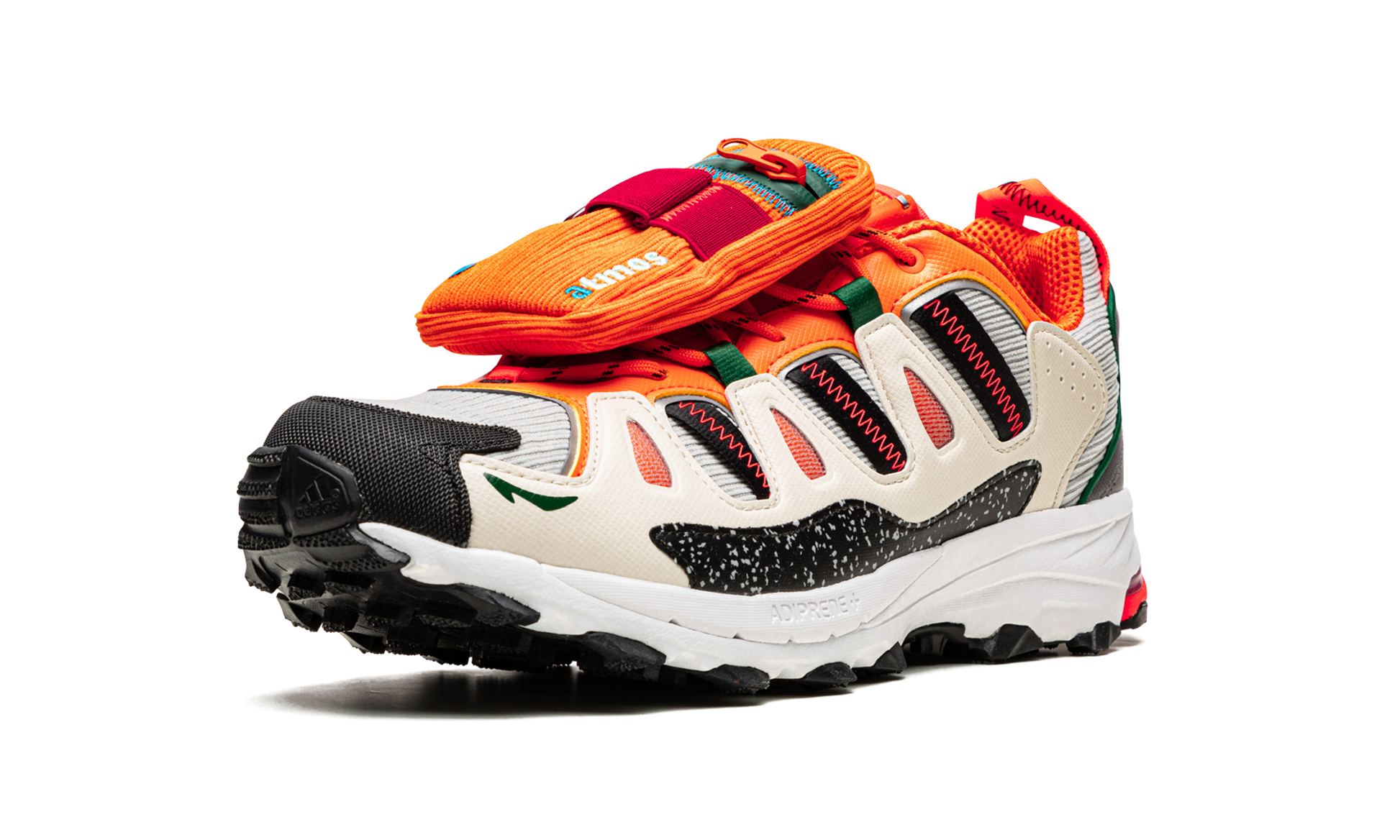 The Sean Wotherspoon x atmos x adidas Superturf Adventure marks the third collaboration with sneaker designer Wothspoon and the umpteenth time the Three Stripes brand has partnered with the Japanese retailer. The outdoor-inspired vegan trail shoe is constructed with a corduroy-based upper. an adiPRENE+ sole. and a recycled polyester and cork insole. A detachable pouch made of corduroy covers the laces. which features atmos branding and a waterproof sealed zipper. Fans who appreciate a bright. utilitarian aesthetic will love this colorway of orange. dark green. white. grey. and black.
