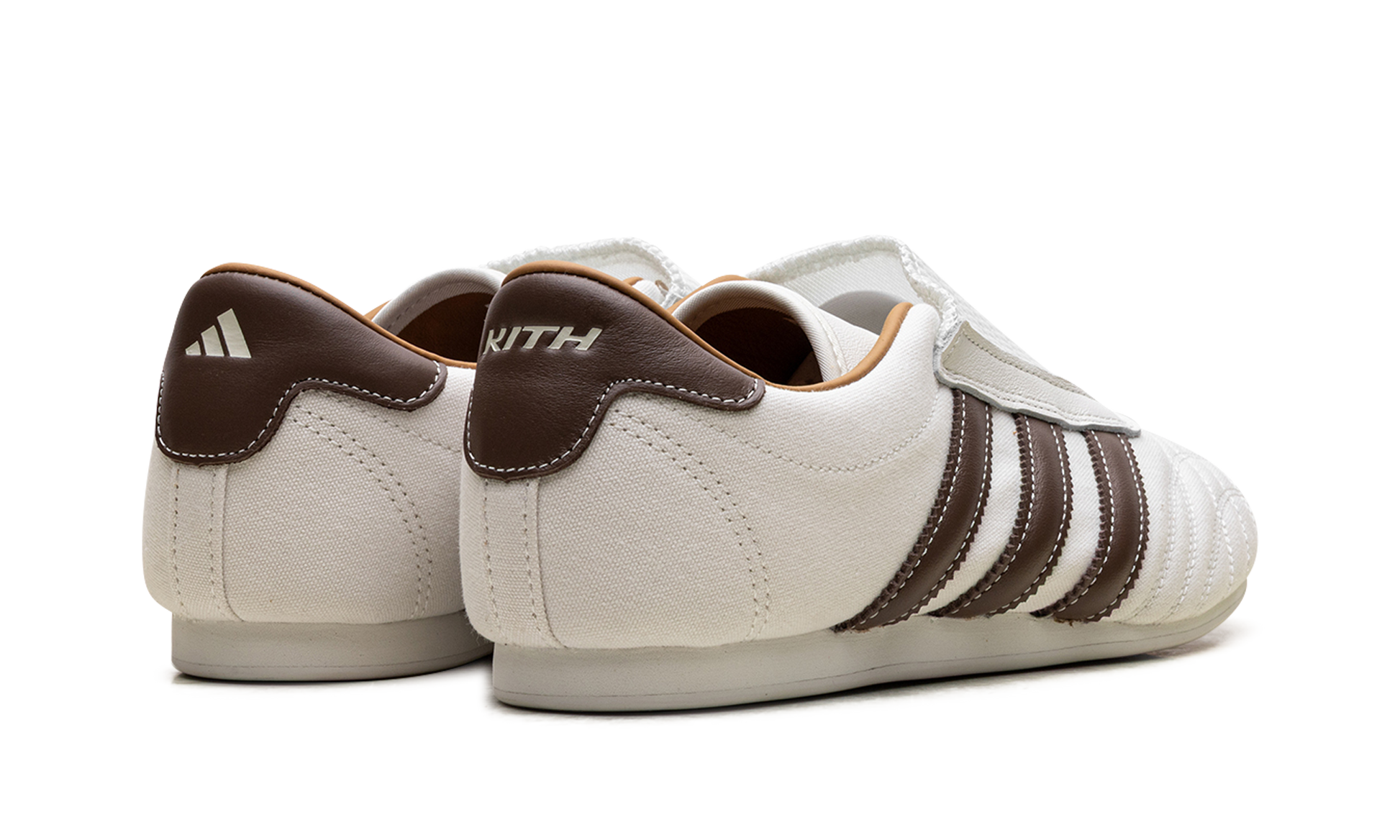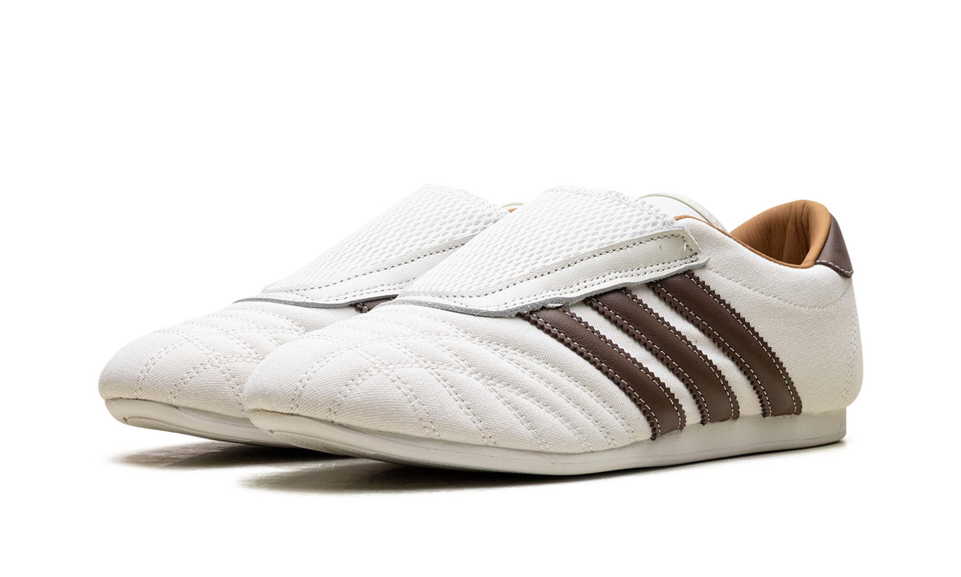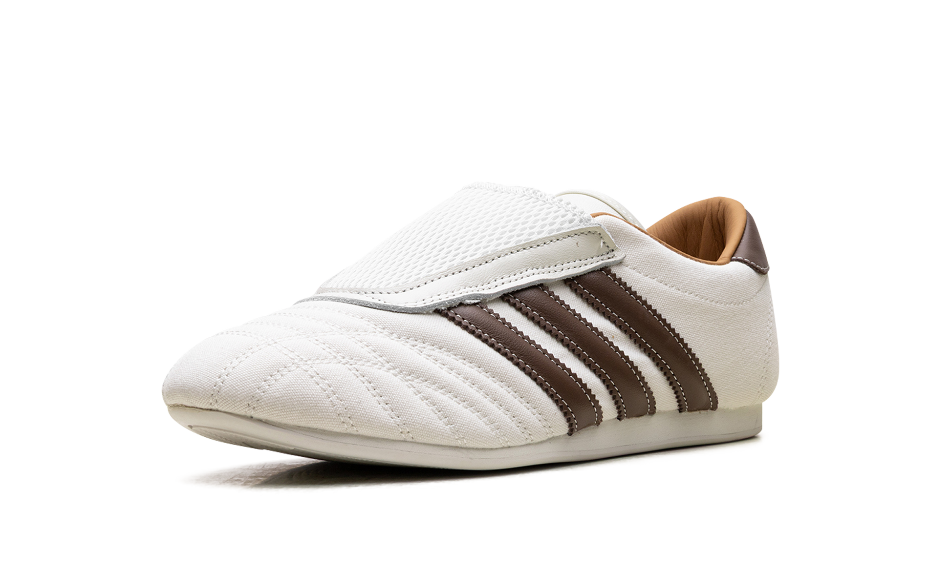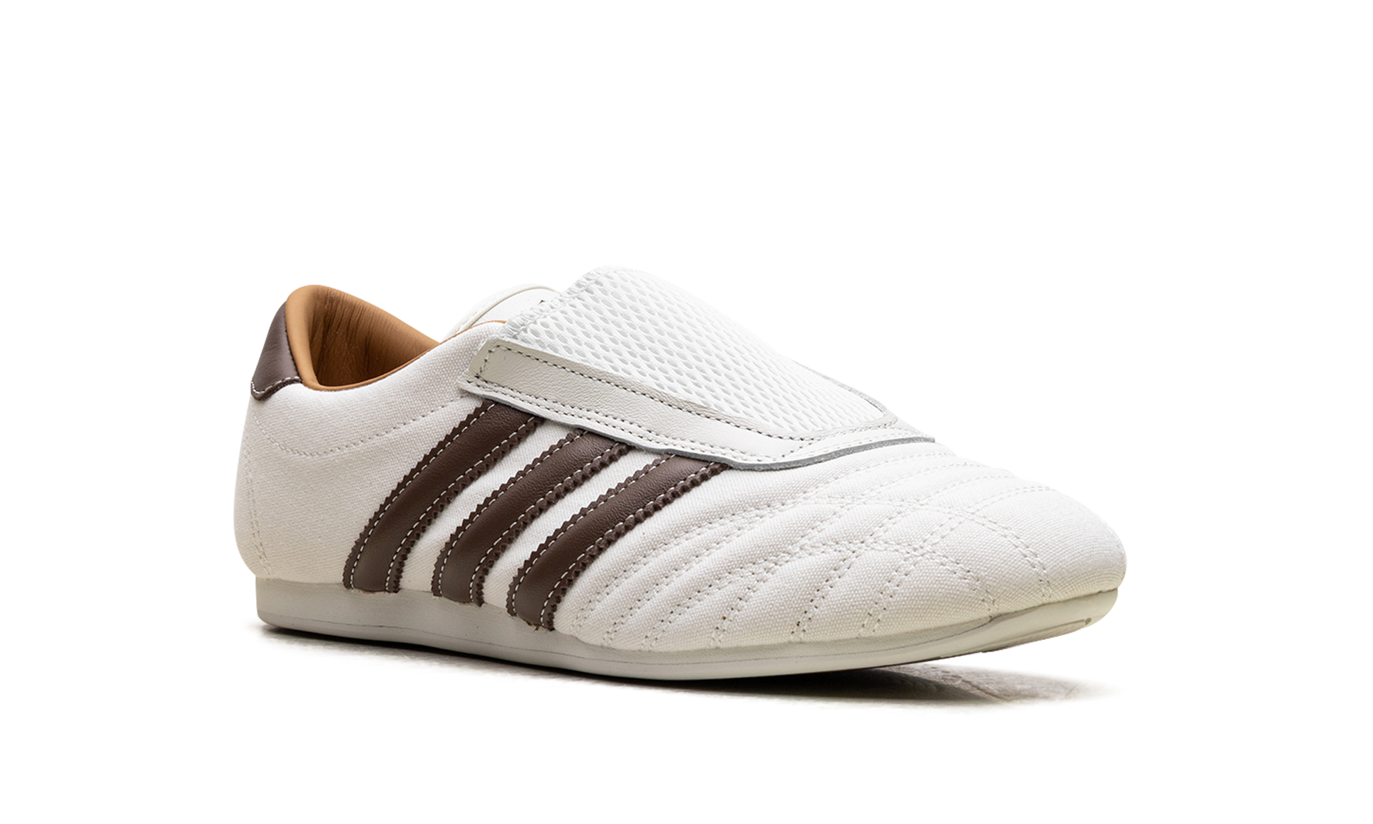 Start your new "balletcore" collection with the stylish Adidas Taekwondo "Kith Natural Canvas Coffee." a women's exclusive from the Kith collaboration. This sleek. slip-on sneaker features a durable natural canvas upper with contrasting Coffee Quartz leather Three Stripes and heel counter. The minimalist design. inspired by the 1988 Olympic martial arts shoe. includes subtle co-branding and a breathable mesh tongue. making it a comfortable. fashion-forward statement piece for your everyday rotation.