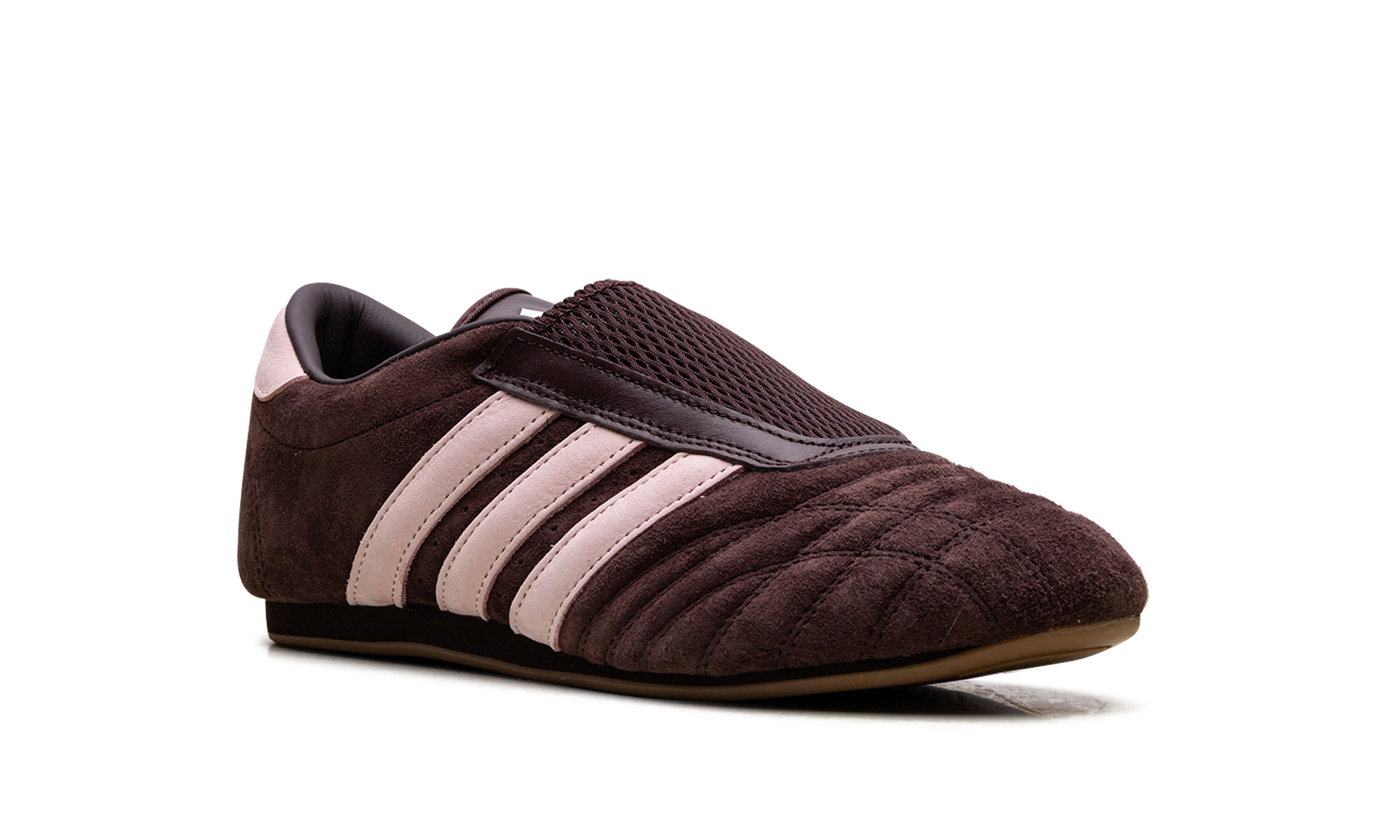 Step into the sleek style of the Adidas Taekwondo sneaker. a limited-edition collaboration piece affectionately nicknamed "Kith Shale Corsage." This ultra low-profile shoe draws inspiration from martial arts footwear and is crafted with a premium suede upper in a sophisticated Shale grey. The slip-on design is accented with a Corsage pink hue and features alternating Kith and Adidas branding on the left and right feet. delivering a minimalist. yet highly exclusive. statement shoe.
