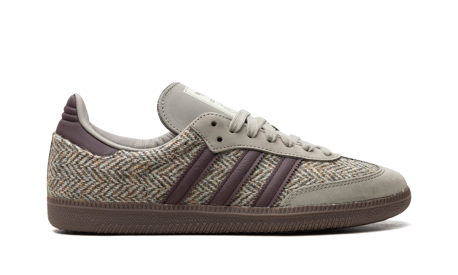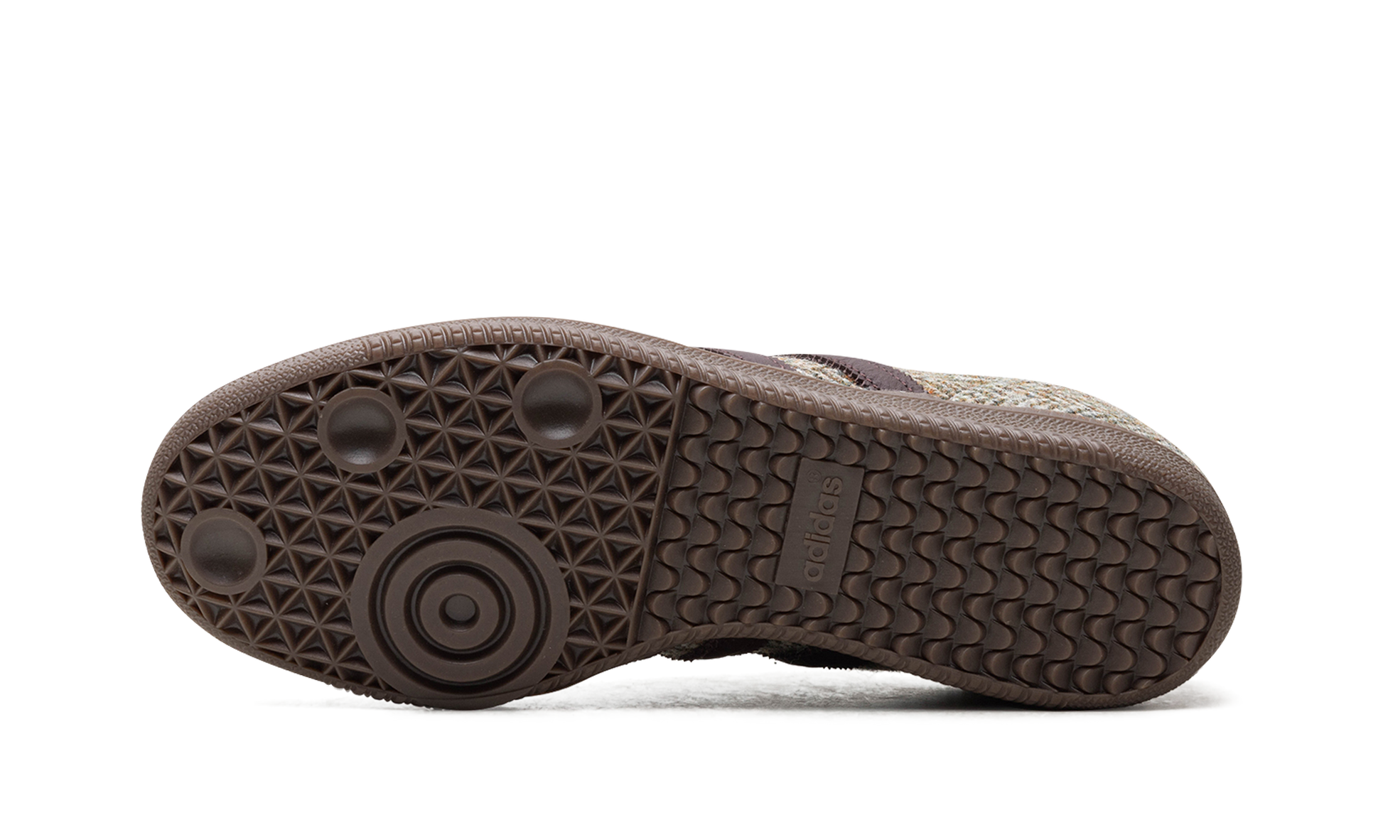 Discover a sophisticated blend of materials with the Adidas Samba OG "Tweed Pack Wonder Beige." The Wonder Beige and Shadow Brown tweed upper offers a unique textural element. while the Wonder White accents complete the stylish look.