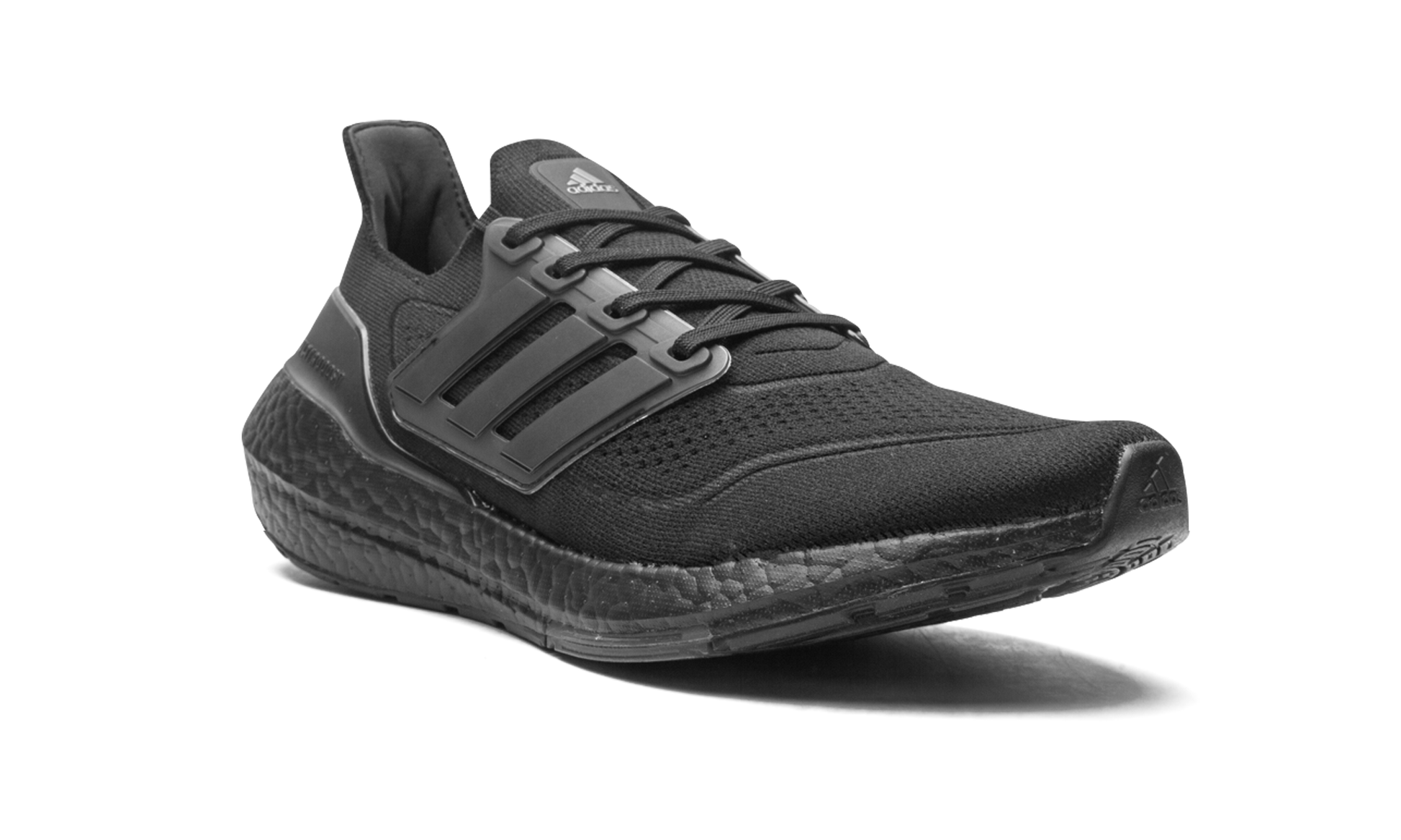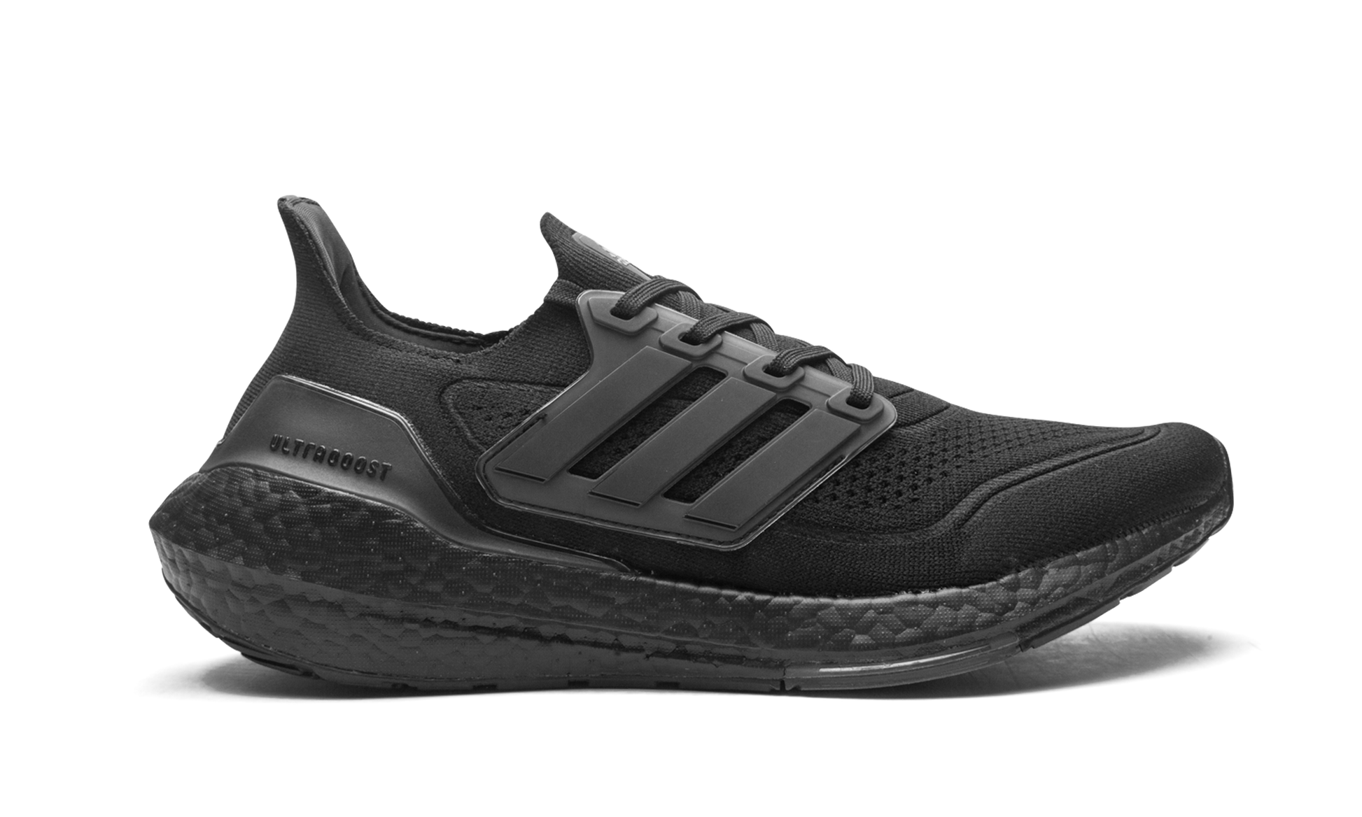 The adidas Ultraboost 21 institutes another installment of the Ultraboost with a newer. sleeker. environmentally conscious silhouette. It features Primeblue yarn on the upper which is a high-performance sustainable material made from Parley Ocean Plastic. A thick. full-length black Boost midsole adds height to the adidas shoe. while a Continental rubber outsole rounds out the design. This colorway comes in Triple Black with a monochromatic look. complete with a matching midfoot cage. laces. heel counter. and tongue tag.