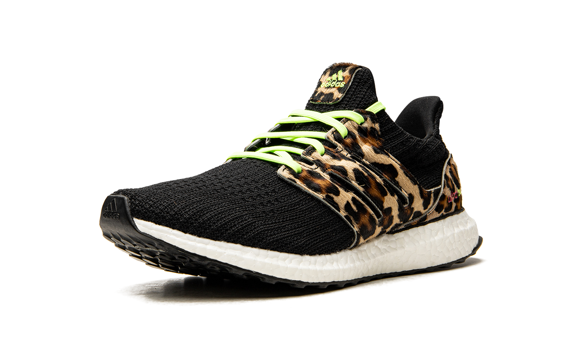 The adidas Ultra Boost “Animal Pack - Leopardâ€?is a creative look for the performance running and lifestyle shoe by adidas that features exotic leopard print on its design. Released in December 2020. the “Leopardâ€?Ultra Boost is one of the model's more adventurous colorways as it combines a black woven Primeknit upper with faux leopard print on the Three Stripes lacing “cage.â€?molded heel cup. and tongue tag. Additional eye-catching details include neon green laces and “adidasâ€?branding on the tongue. and pink and neon green “Ultra Boostâ€?detailing on the lateral side of the heel counter. The shoe rides on a white Boost cushioned midsole protected by a Continental Rubber outsole. Release date: December 8. 2020