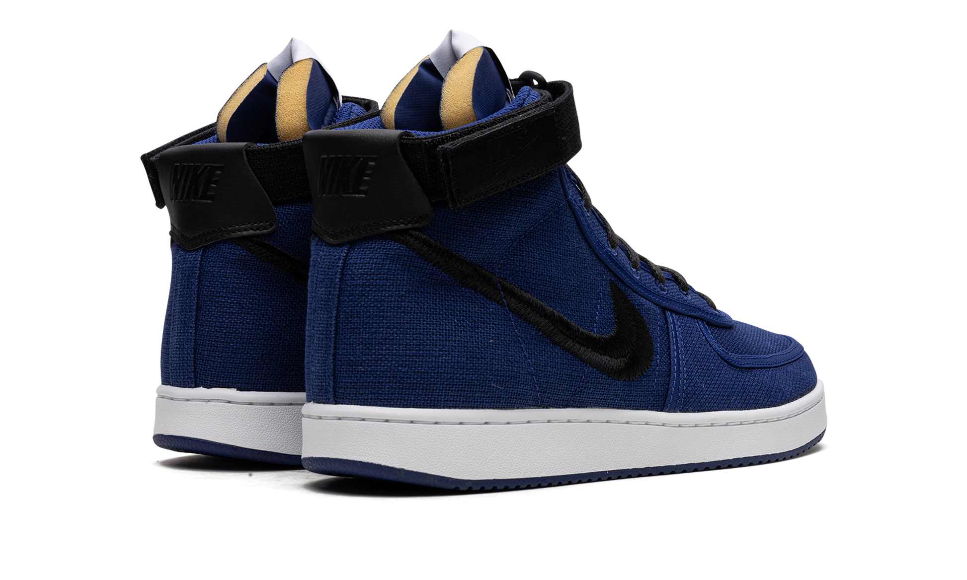The Stussy x Nike Vandal High SP “Deep Royal Blueâ€?is a collaboration between the California-based streetwear brand and Nike that brings back the classic basketball shoe. The Nike Vandal debuted way back in 1984 as a basketball shoe before it returned as part of a project with Stussy in 2023. One of three Vandal High colorways released by Stussy. the “Deep Royal Blueâ€?features a dark royal hemp canvas construction with black embroidered Swooshes on the sides. A black canvas adjustable ankle strap appears on the collar of the shoe. Stussy's classic â€? Ballâ€?logo replaces the usual “Nikeâ€?logo on the tongue tag. A white rubber midsole and Deep Royal Blue rubber outsole complete the look. Each pair comes with additional strap and lace colors.
