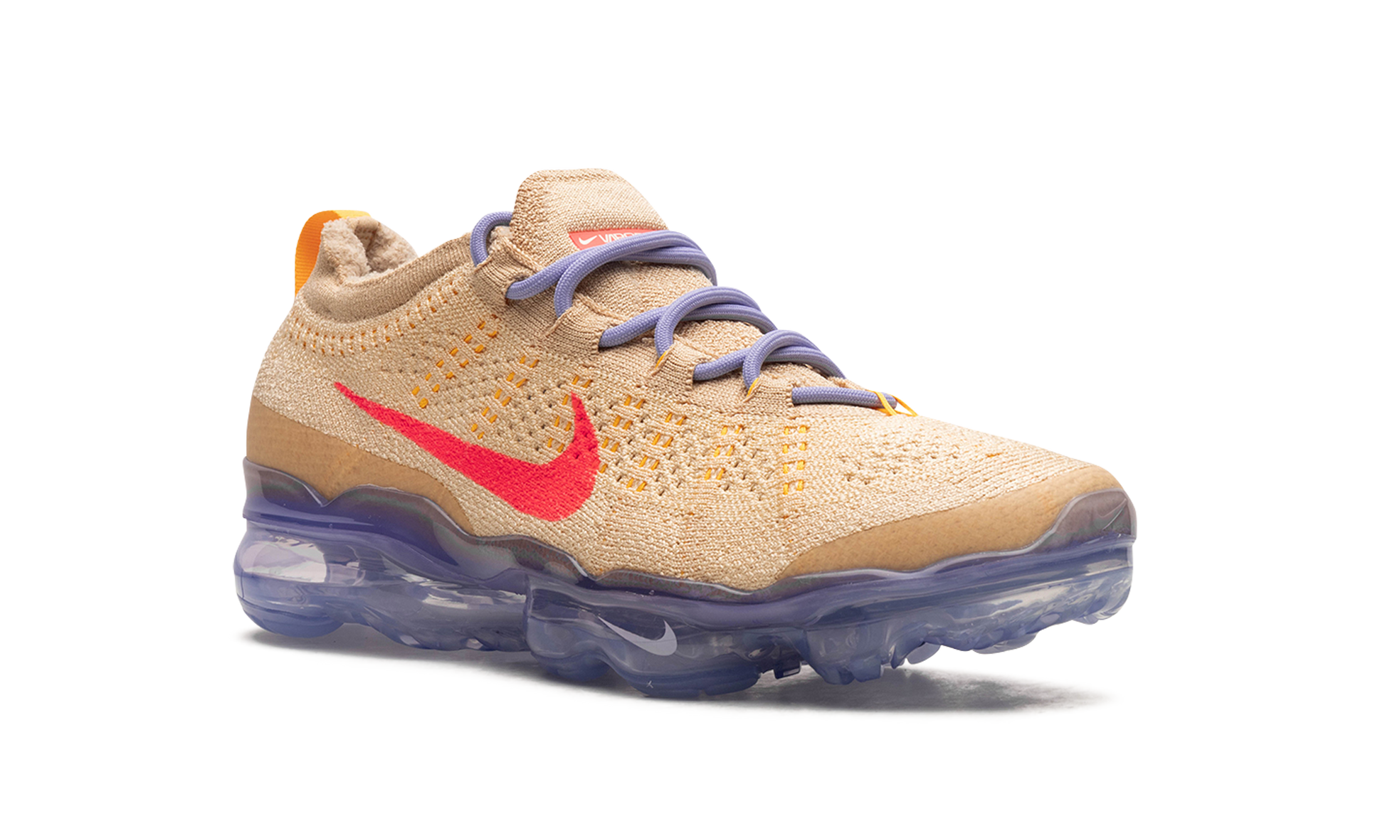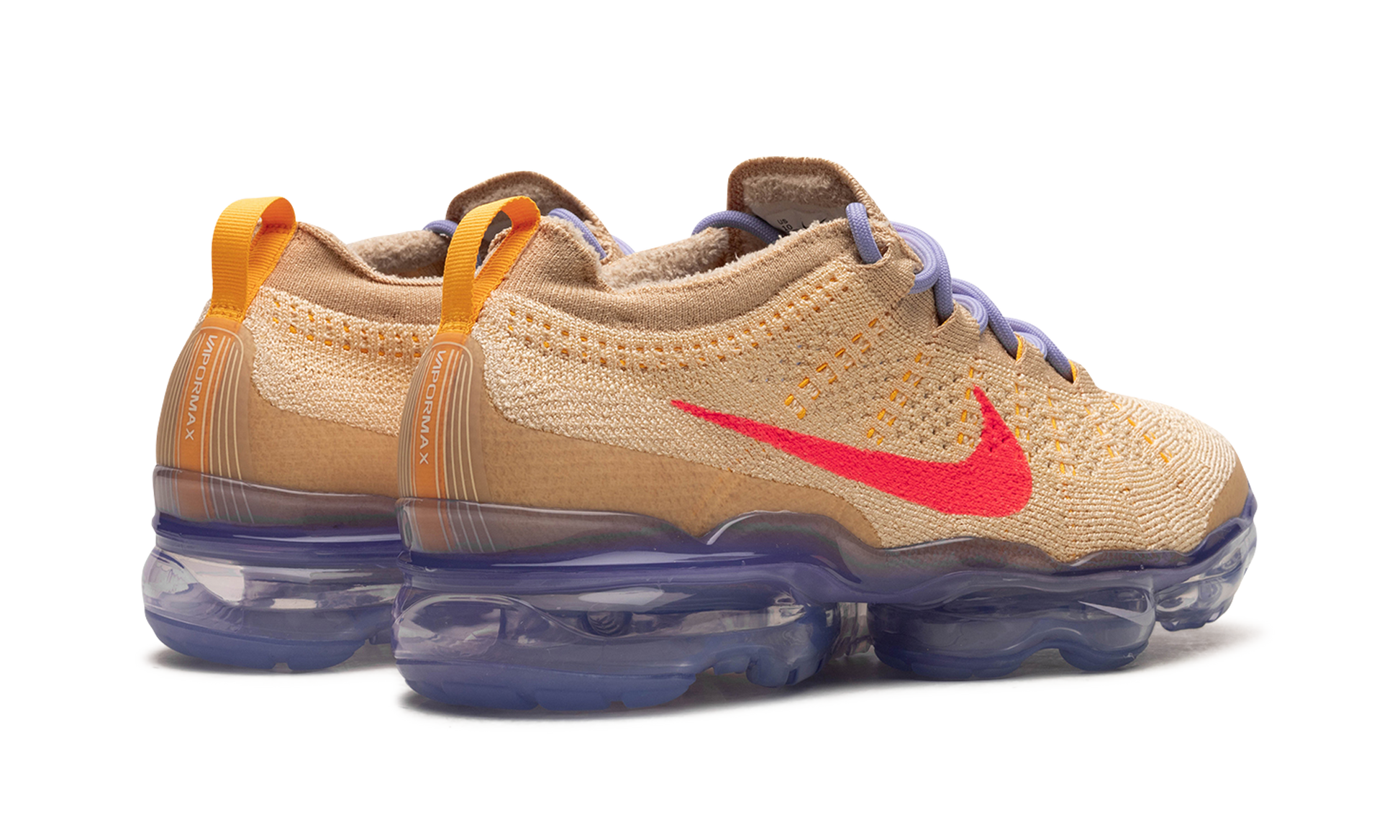 The Nike Vapormax 2023 Flyknit "Pale Vanilla" is a versatile. go-anywhere colorway of the progressively designed shoe. The Vapormax 2023 Flyknit in “Pale Vanillaâ€?features a tan Flyknit construction that's both lightweight and breathable. A pink Swoosh appears on the sides of the shoe while “Nike Vapormaxâ€?branding is found on the tongue. In spite of the shoe's sock-like build. the shoe is outfitted with purple laces that pop against the tan design. Nike's Vapormax cushioning technology appears in pod-like form on the button of the shoe. giving the sneaker an ultra responsive feel. Release date: May 18. 2023
