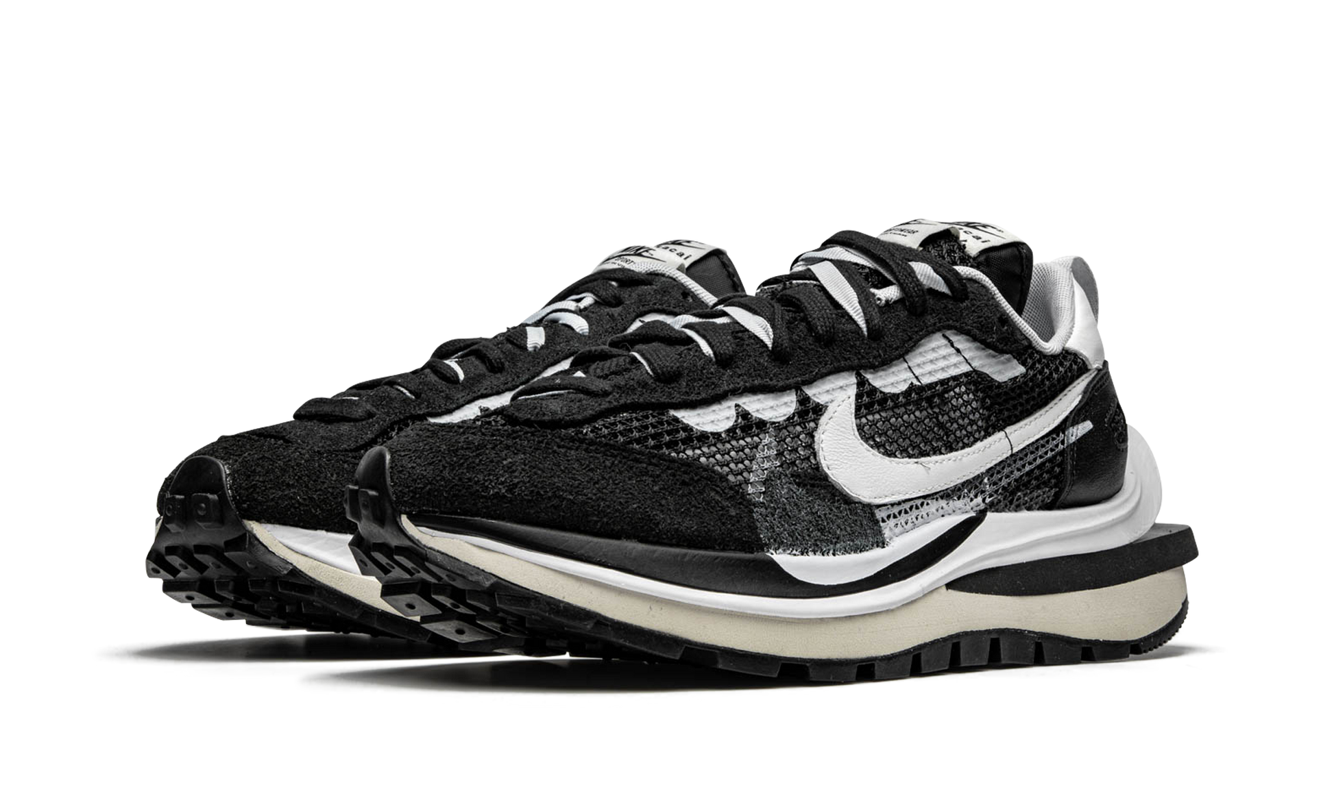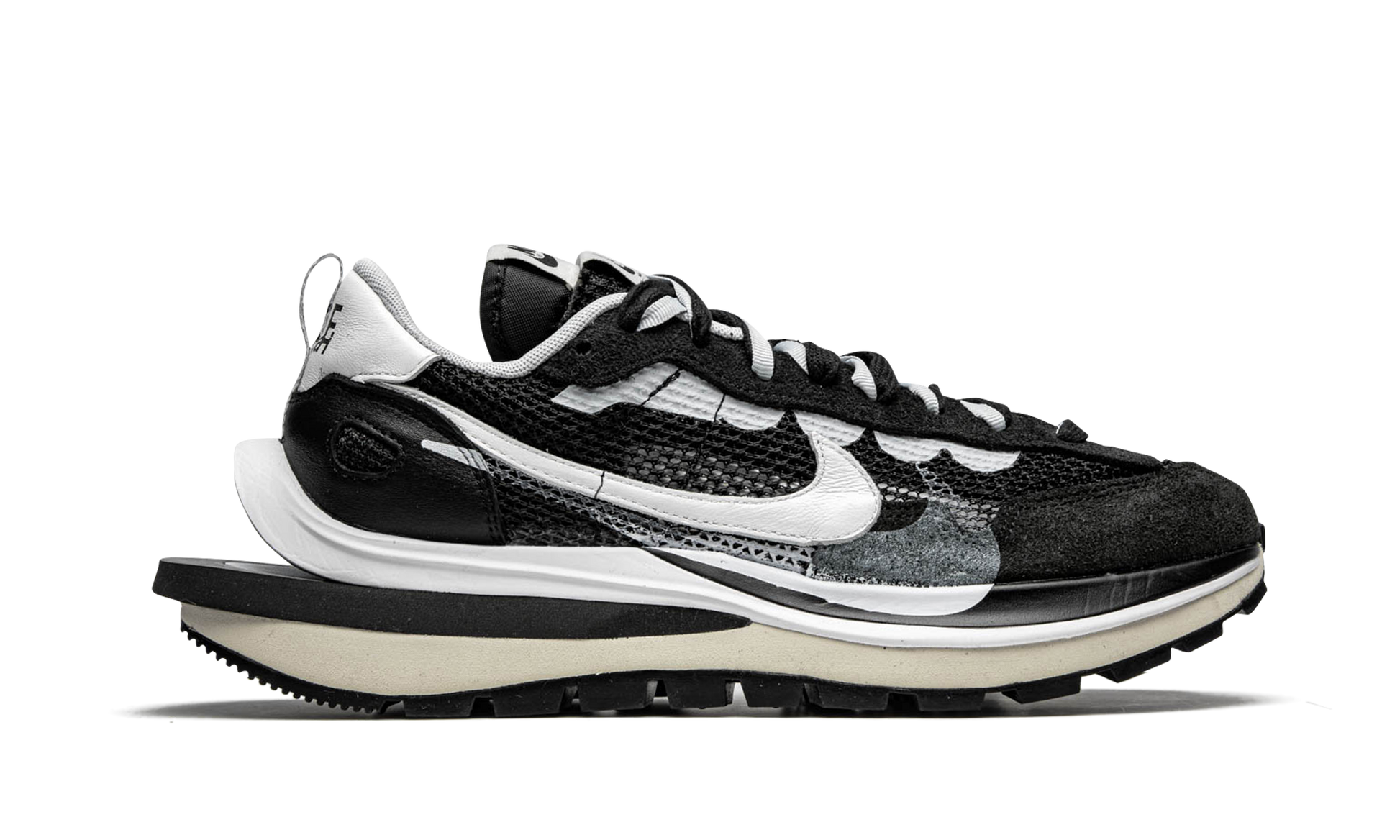 The sacai x Nike VaporWaffle “Black/Whiteâ€?is one of two debut colorways of the hybrid silhouette that combines elements of Nike's VaporMax and Waffle Racer runners. A Fall 2020 release. the sacai x Nike VaporWaffle in the “Black/Whiteâ€?offering continues the high fashion house's “double-layeredâ€?approach that essentially does everything in “twos.â€?This includes two Swooshes on either side of the black mesh mid-panel. black and white shoelaces. and a mesh and nylon stacked tongue with dual sacai and Nike detailing on the nylon tongue tag. The stealthy appearance of the shoe is enhanced by the black suede detailing on the eyelets. toe. and heel. Dual sacai and Nike insignia appear in black text on the white leather heel tab. The look is finished off with a stacked midsole that splits at the heel. Release date: Fall 2020.