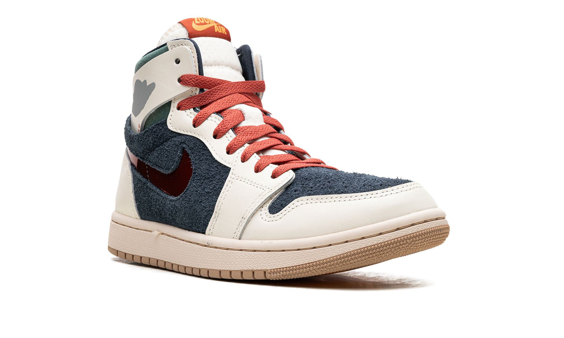 Step into ultimate style and comfort with the Wmns Air Jordan 1 ZM Air CMFT 2 "You're Welcome". This special edition sneaker pays tribute to NYC bodega culture and the Jordan Women's Collective with its vibrant. high-top design. Crafted with a premium mix of navy suede and pale ivory leather overlays. it features metallic "Dragon Red" accents and a "scratch-off" style logo reveal. Complete with Zoom Air cushioning and "You're Welcome" printed insoles. this is a truly significant and comfortable AJ1 remix.