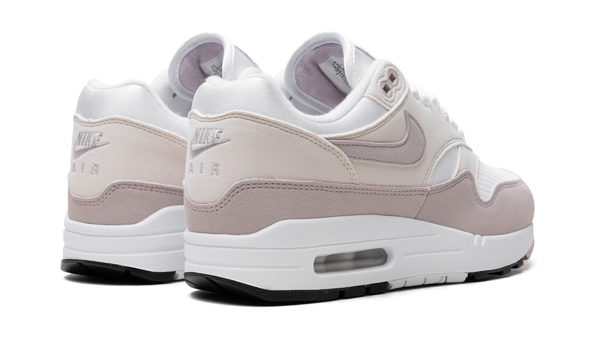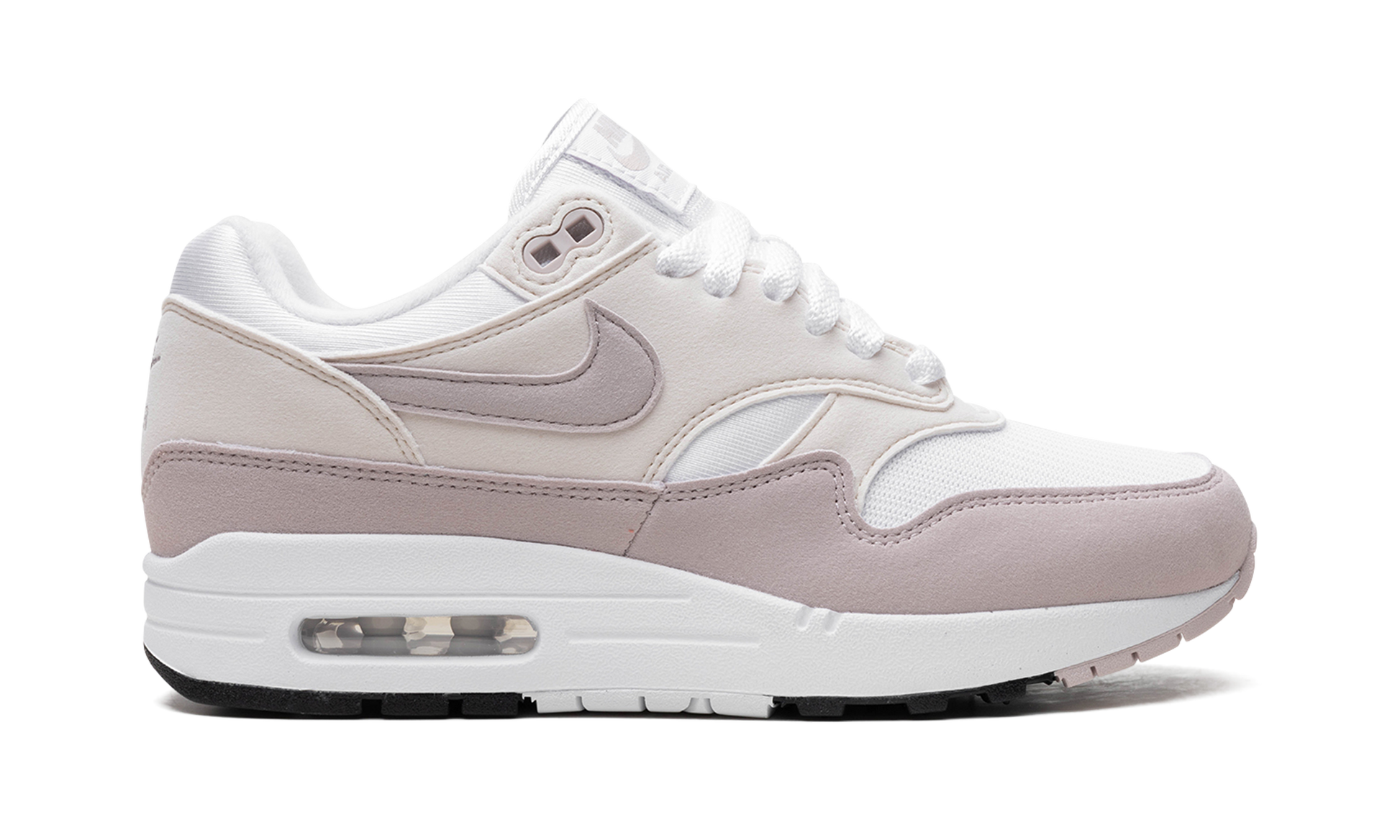 The Women's Nike Air Max 1 “Platinum Violetâ€?is a women's-exclusive colorway of the retro running shoe in a versatile color scheme. The upper features a breathable white mesh construction and is paired with Phantom suede overlays. A Platinum Violet suede Swoosh can be found on either side of the shoe. matching the color of the suede mudguard. Additional Platinum Violet detailing can be found on the “Nike Airâ€?embroidery on the heel and on the “Nikeâ€?and Swoosh branding on the tongue tag. Underfoot. a visible Air cushioning unit appears in the heel of the midsole.