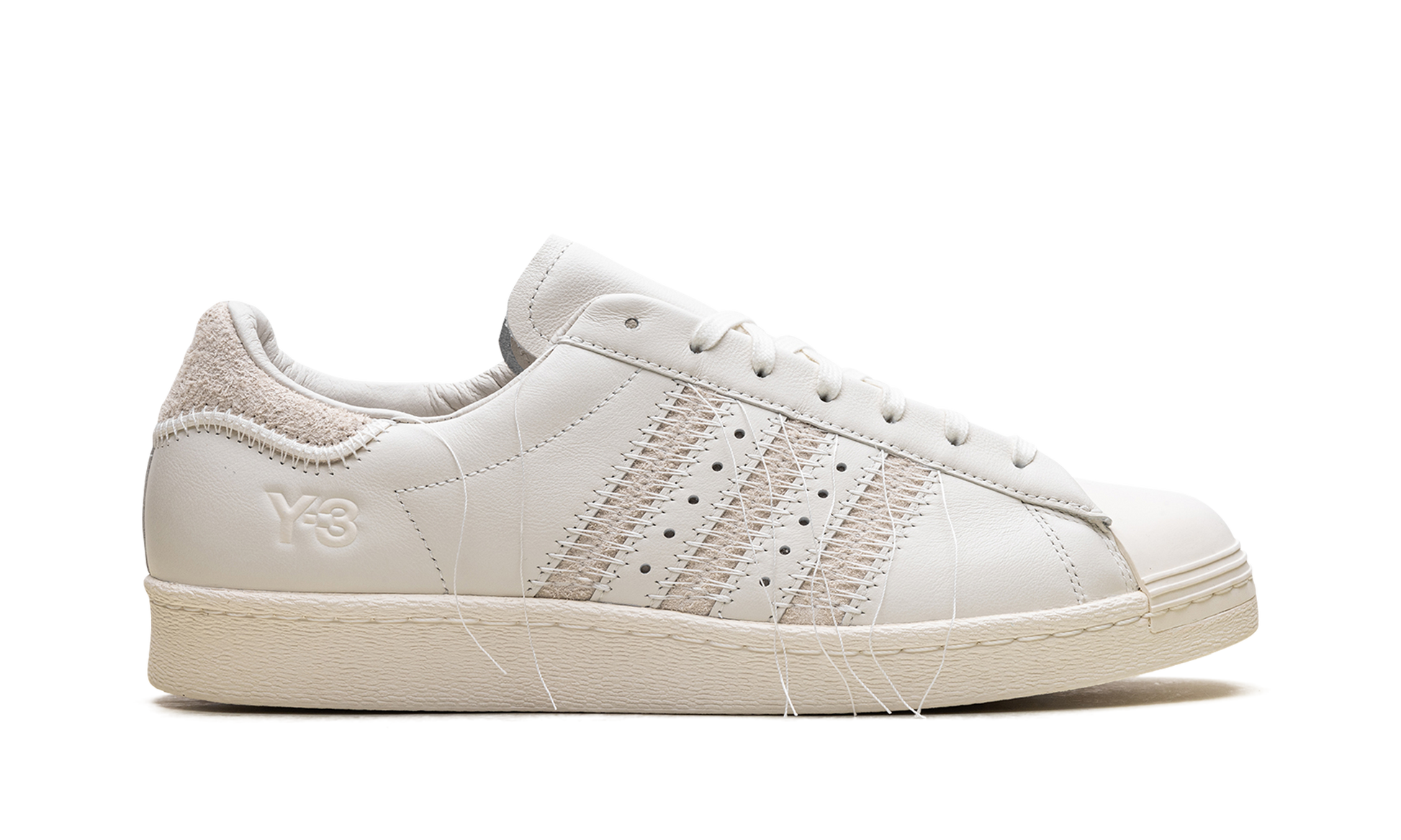 The Y-3 Superstar 'White' shoe blends classic Adidas Superstar style with Y-3's avant-garde design. featuring a minimalist white aesthetic.