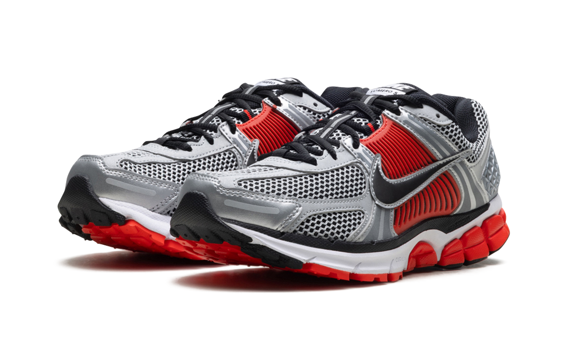 The Nike Zoom Vomero 5 is the retro-tech sneaker of choice. defined by its complex layering and ultimate comfort. The Metallic Silver / Bright Crimson (FJ4151 005) colorway offers a bold. early 2000s-inspired look. combining sleek metallic finishes with an aggressive flash of color.